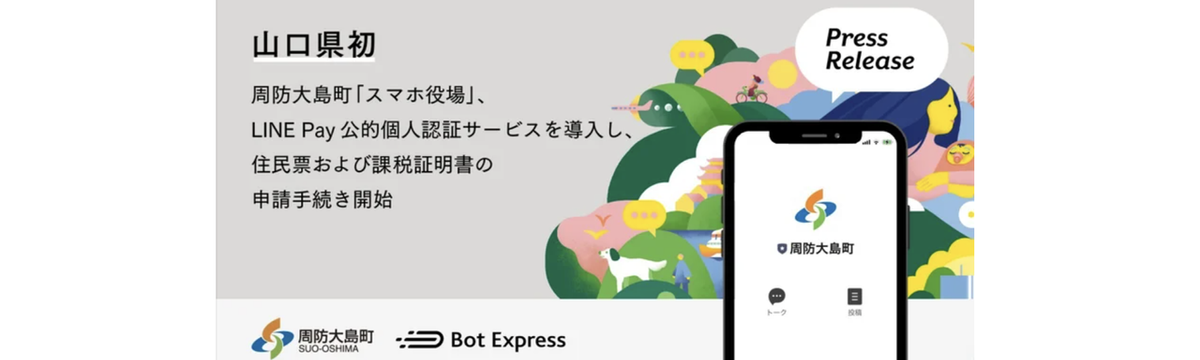 株式会社Bot Express 2年弱前 フォロー Hori Kanako 山口県初、周防大島町がLINE Pay 公的個人認証サービスを導入し、住民票と所得課税証明の申請手続きを開始 山口県周防大島町(町長:藤本 淨孝)が、周防大島町LINE公式アカウントに開設した「スマホ役場」から、住民票と所得課税証明の申請手続き、飼い犬の各種申請、沖家室シーサイドキャンプ場の予約などが可... もっと見る