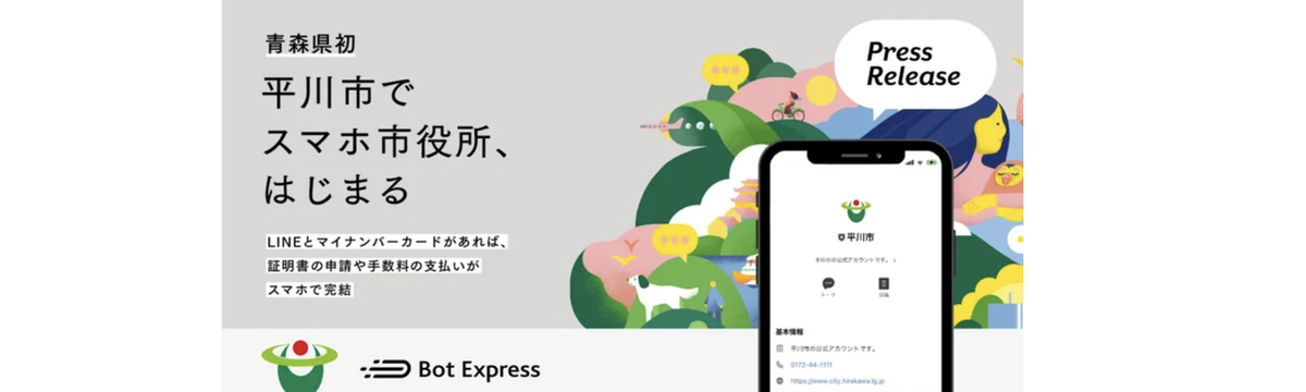株式会社Bot Express 2年弱前 フォロー Hori Kanako 青森県初、平川市がGovTech Expressを活用し「スマホ市役所」を開設 青森県平川市(市長:長尾 忠行)がGovTech Expressを活用し、平川市LINE公式アカウントから行政手続きが可能となる「スマホ市役所」を10月2日に開設しました。平川市LINE公式アカ... もっと見る