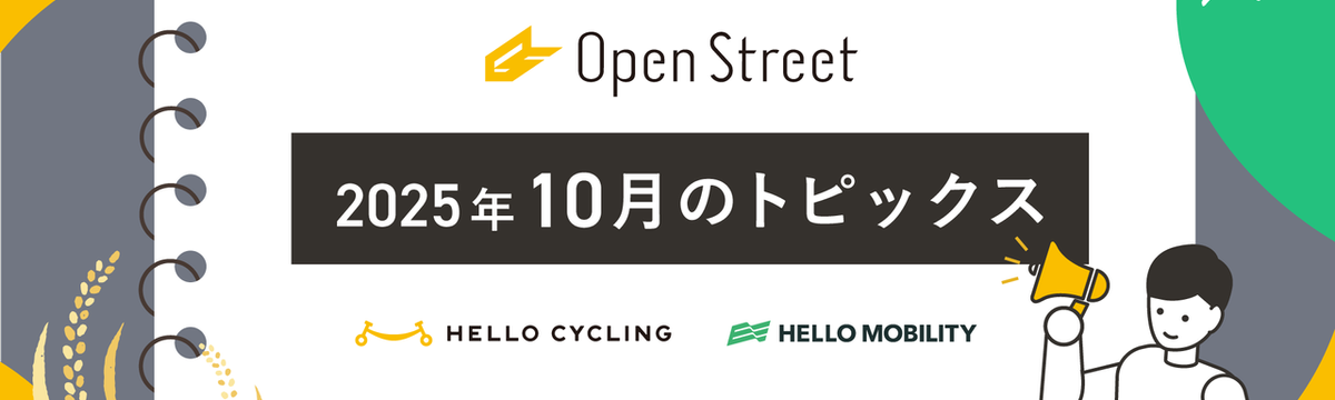 OpenStreet株式会社 約1ヶ月前 フォロー 仙石 玲 OpenStreet10月のトピックスを紹介! OpenStreetの10月トピックスをまとめた記事を公開しました📝千葉県流山市と協定を締結しHELLO CYCLINGを開始神奈川県厚木市と協定を締結しHELLO CYCLINGを開始HELL... もっと見る