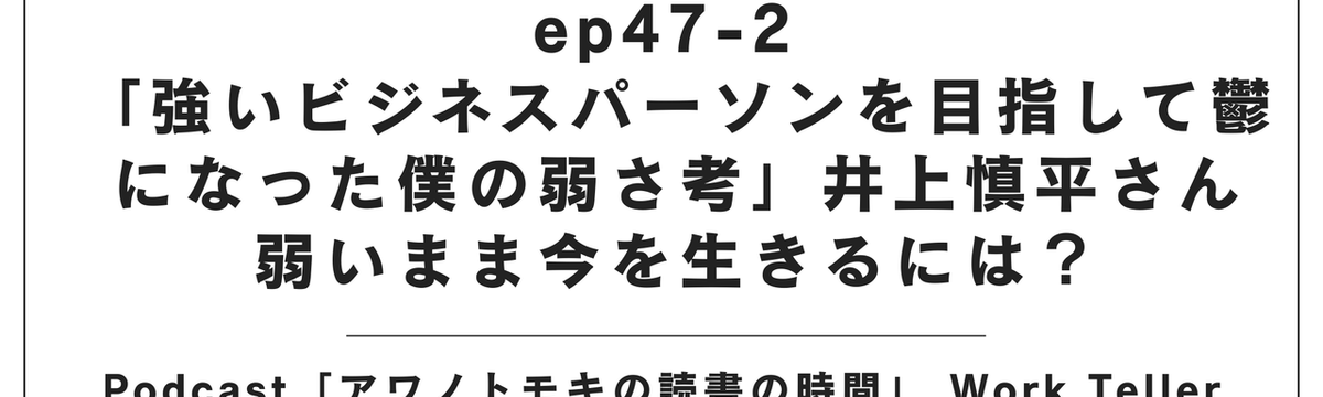 粟野 友樹 3日前 フォロー Podcast「アワノトモキの読書の時間」 Work Teller ep47-2 「強いビジネスパーソンを目指して... Podcast『アワノトモキの読書の時間』 Work Teller ep47-2深夜のオフィス。誰もいないデスクの光だけが、自分の弱さを照らしてくる瞬間があります。「もっと強くならなければ」と自... もっと見る