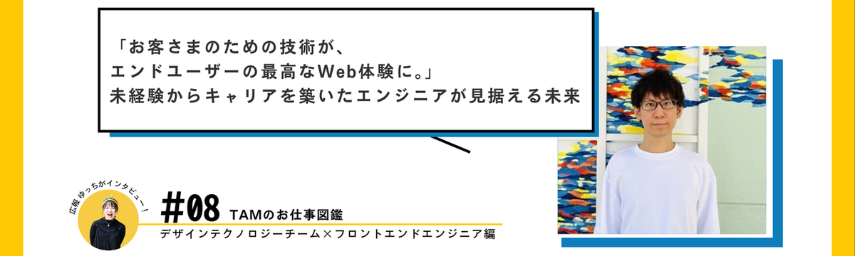 TAMのお仕事図鑑 約1年前 フォロー 渡邉 由姫乃 他1人 「お客さまのための技術が、エンドユーザーの最高なWeb体験になる」未経験からTAMでキャリアを築いたエンジニアが見... TAMでは様々な経歴のメンバーが活躍しています。フロントエンドエンジニアの知念昌史さんは、美容業界から2011年にTAMへやってきました。現在は大手企業のWebサイトやアプリ開発だけでなく、テク... もっと見る