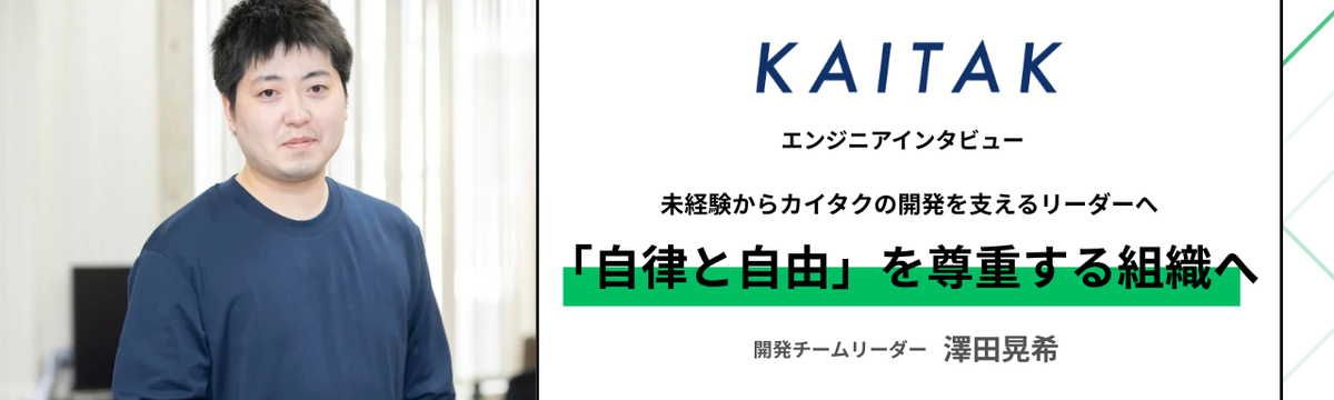 KAITAK ブログ 6ヶ月前 フォロー カイタク 採用担当 他1人 【エンジニアインタビュー#2】未経験からカイタクの開発を支えるリーダーへ───「自律と自由」を尊重する組織 カイタクの働き方や価値観を、最前線で活躍するメンバーの言葉で伝えるインタビューシリーズ。今回は、エンジニア未経験でSNSからカイタクに出会い、現在では開発チームのリーダーとして活躍されている澤田... もっと見る