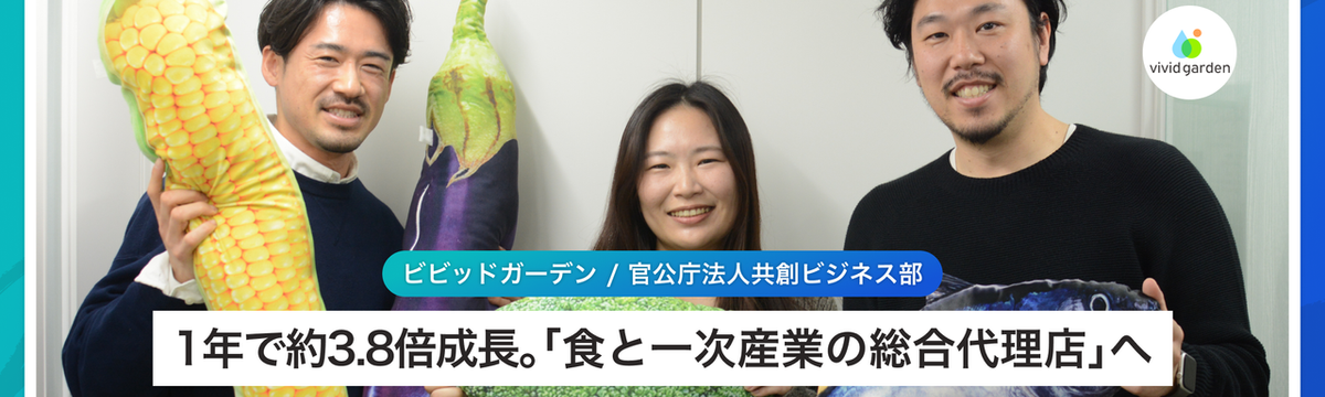株式会社ビビッドガーデン 19日前 フォロー 伊藤 勝吾 【自治体・法人チームインタビュー】「食と一次産業の総合代理店」へ。前例ゼロから立ち上がった新規事業チームの挑戦とリアル 高い熱量で全国の自治体さん・法人さんとお仕事をする自治体・法人チームの募集はこちら!「本当に事業になるの?」から始まった――まずは、自治体・法人チームが立ち上がった当時のストーリーから伺わせてく... もっと見る