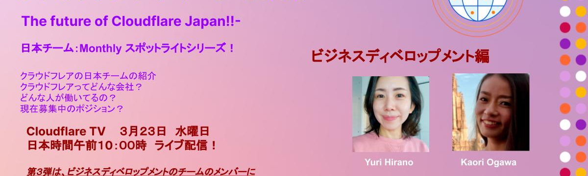Cloudflare 4年弱前 フォロー Ayako Kobayashi クラウドフレアジャパンの未来 第三弾:ビジネスディベロップメント クラウドフレアジャパンの未来 第三弾!!!今月は、女性のエンパワーメント月間ということで、ビジネスディベロップメントチームの女性メンバーにいろんなお話をお伺いしていきます。ぜひご視聴ください! ... もっと見る