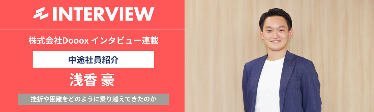 社員インタビュー 約1ヶ月前 フォロー 坂田 基晴 他1人 Dooox社員インタビュー#5:最もDoする男がどのように挫折や困難を乗り越えてきたのか 「Doooxに入社して、ビジネスマンとしてだけでなく、人間として大きく成長させてもらっています」そう語るのは、株式会社Dooox 営業統括室 室長の浅香 豪(あさか たける)です。圧倒的な行動量... もっと見る