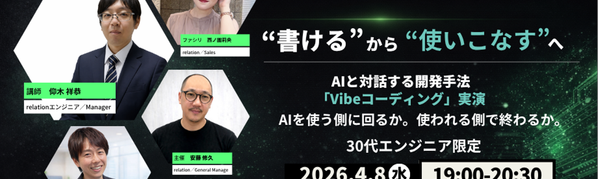 株式会社relation 約4時間前 フォロー 山本 ほのか イベント告知 #1|【4/8(水)開催】第7回 30代エンジニア限定!AI開発デモンストレーション こんにちは!relationのWantedly担当です。4月に入り、新年度がスタートしました。新しい環境やプロジェクトにワクワクしつつ、少し緊張する時期でもありますね。街では新緑が芽吹き、春らし... もっと見る