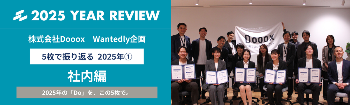 株式会社Dooox 約1ヶ月前 フォロー 若林 寿怜 5枚で振り返る2025年①:社内編 2025年も残りわずかですね。今回は「5枚で振り返る2025年」の第1弾「社内編」です。写真と共に1年を振り返りながら私たちの会社を紹介します!1.個性豊かな新卒2期生が入社!2.心機一転!オフ... もっと見る