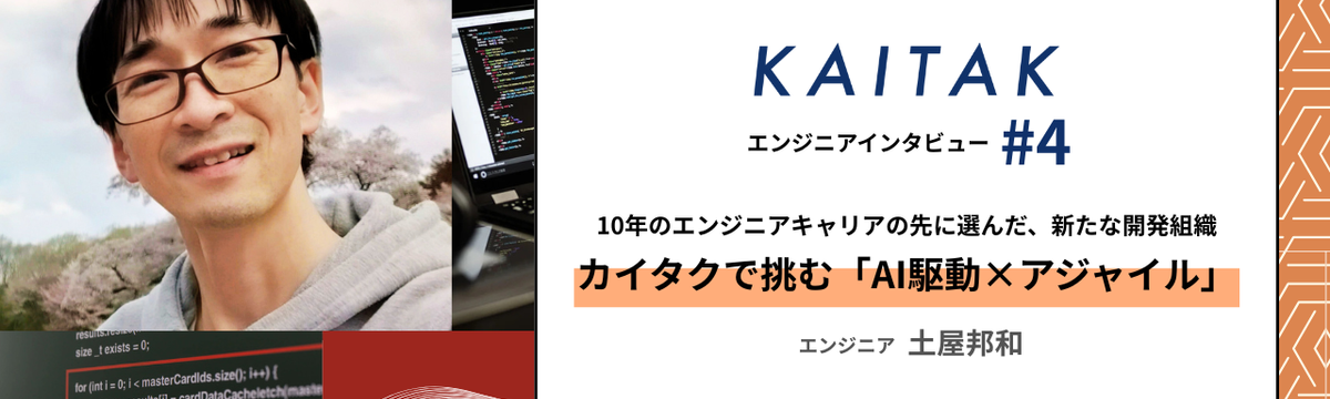 KAITAK ブログ 2ヶ月前 フォロー カイタク 採用担当 【エンジニアインタビュー#4】10年のエンジニアキャリアの先に選んだ、新たな開発組織──カイタクで挑む「AI駆動×... カイタクの働き方や価値観を、最前線で活躍するメンバーの言葉で伝えるインタビューシリーズ。今回は、10年以上にわたってWebエンジニアとしてキャリアを築き、要件定義や基本設計からITコンサルタント... もっと見る