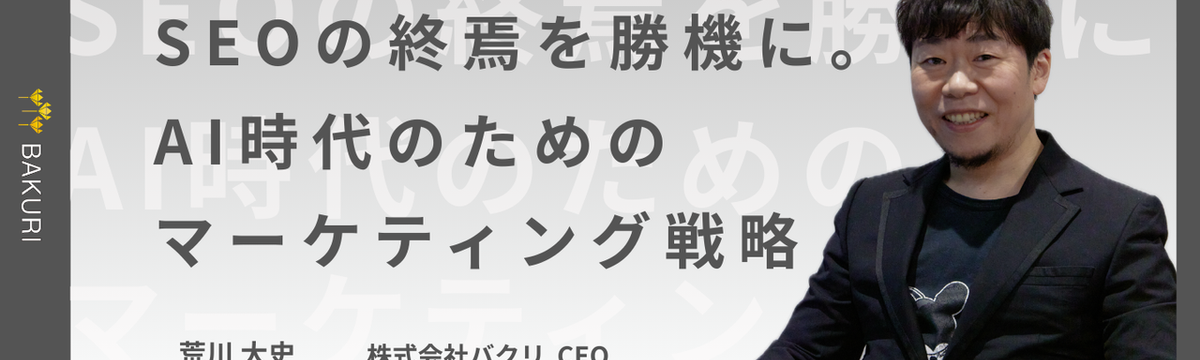 バクリ株式会社 18日前 フォロー BAKURI Recruit 他1人 AIに仕事を奪われたくない人へ。SEOの終焉を勝機に変える、バクリCEO荒川の成長戦略。 「AIの普及で、今のマーケティングスキルは通用しなくなるのではないか?」そんな漠然とした不安を抱えながら、日々の業務に向き合っている方もいるのではないでしょうか。今回は、株式会社バクリの代表・荒... もっと見る