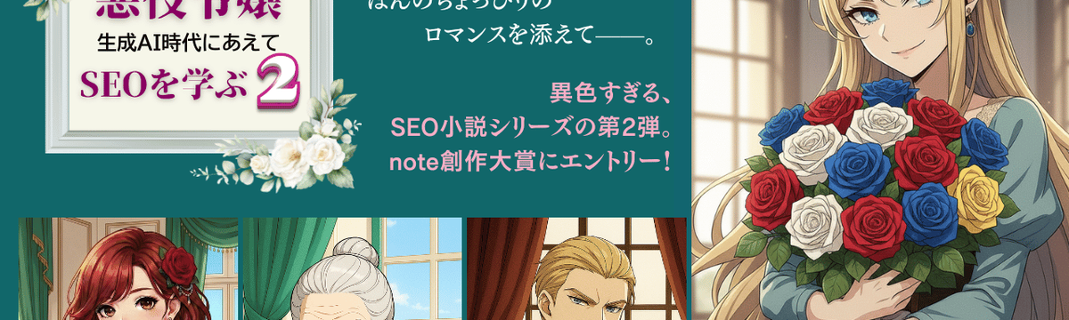 太幡(今田) 藍 13日前 フォロー 「創作大賞2026」 #お仕事小説部門 に【SEO小説シリーズ第2弾】をエントリーしました! いつも『悪役令嬢、生成AI時代にあえてSEOを学ぶ』をご愛読いただき、ありがとうございます!本日より、現在noteで連載中のSEO小説【第二部】を、note創作大賞2026の「お仕事小説部門」に... もっと見る