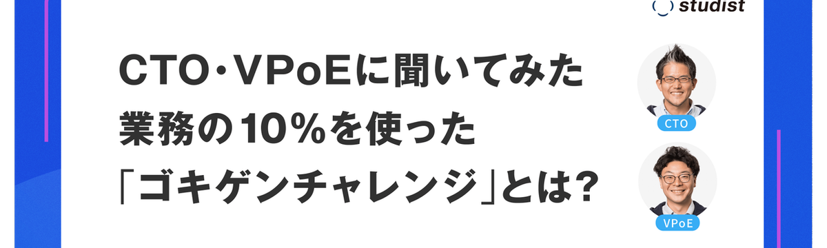 スタディストのカルチャー 3年弱前 フォロー スタディスト 採用担当 他2人 チームのゴキゲンを継続させる10%ルール、CTOとVPoEに聞いた取り組みの背景 突然ですが、スタディスト開発本部では、「ゴキゲンに働くこと」を大切にしています。(ゴキゲンとは読んで字の如くご機嫌、機嫌が良いということなのですが、開発チームではこだわりを持ってこの言葉を使って... もっと見る