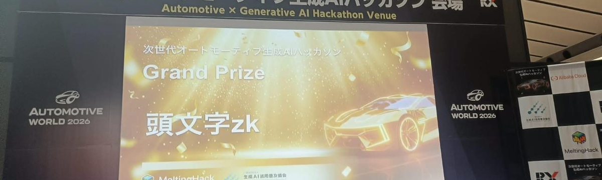 近藤 晴輝 26日前 フォロー 次世代オートモーティブ生成AIハッカソン優勝! 次世代オートモーティブ生成AIハッカソン 優勝しました!!2026年1月16日から18日にかけて行われた予選を経て東京ビッグサイトにて決勝戦が行われ、僕たちのチーム 「頭文字zk」が優勝しました... もっと見る
