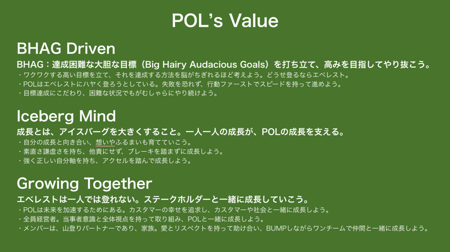 ・POLのValueの中の「山登りパートナーであり、家族」