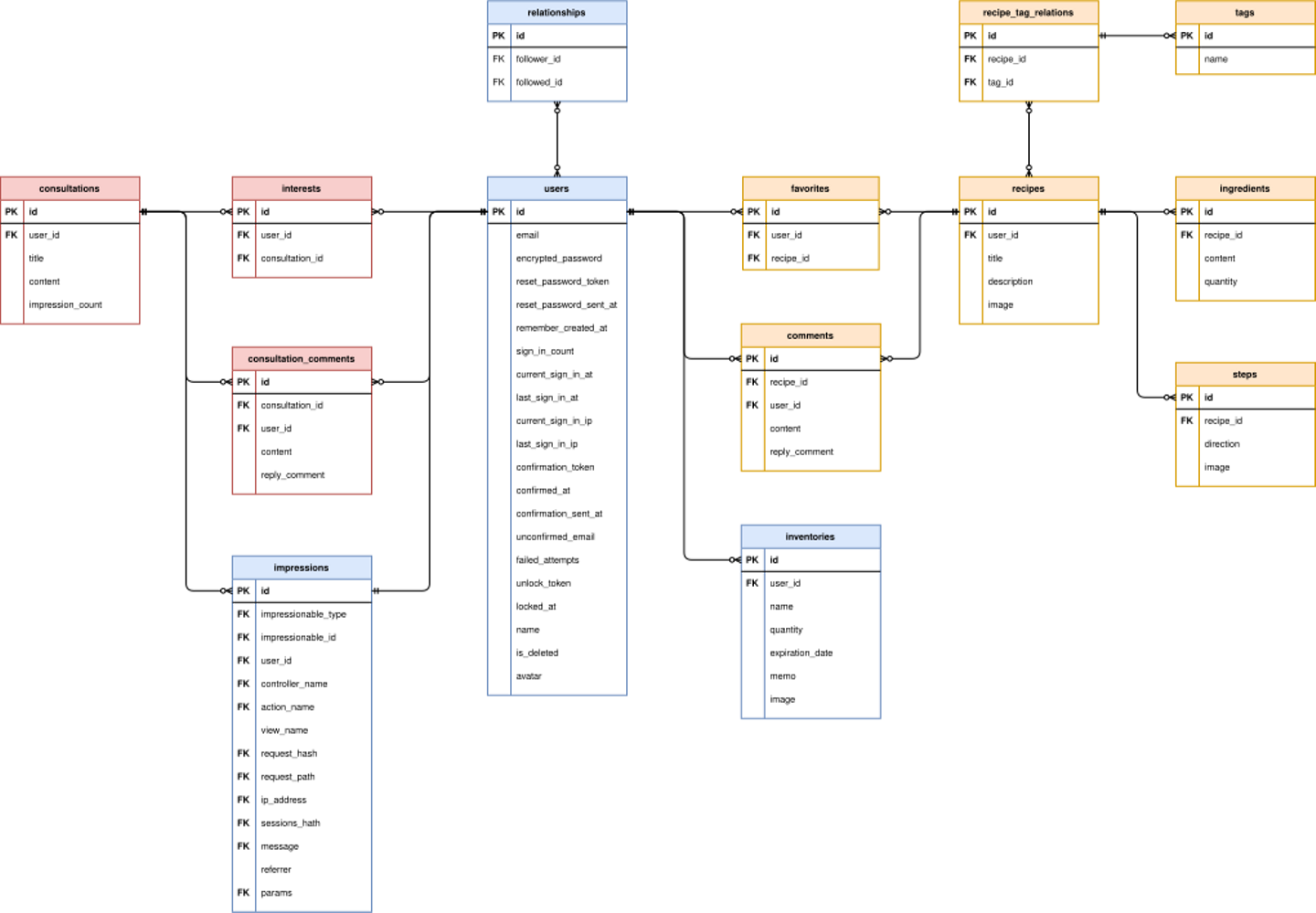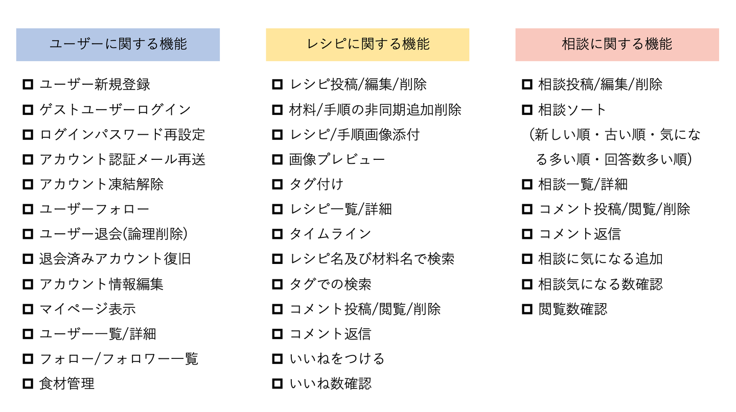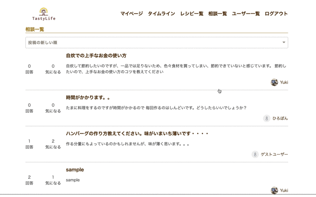それに対応できるよう相談投稿や食材管理機能を追加し、一般的なレシピサイトとの差別化を図りました。