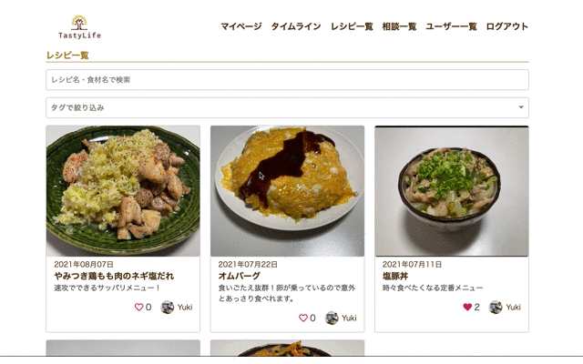 レシピをすぐ決めて、自炊継続できるようタグ検索、ワード検索機能を追加しました。