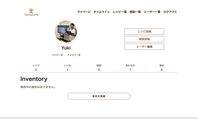 Github: https://github.com/YukiIshizaki0525/TastyLife