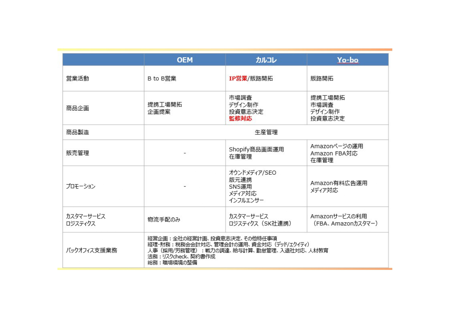 (ex. 営業活動&商品企画や、商品製造&販売管理&カスタマーサービスなど ※上記表参照)