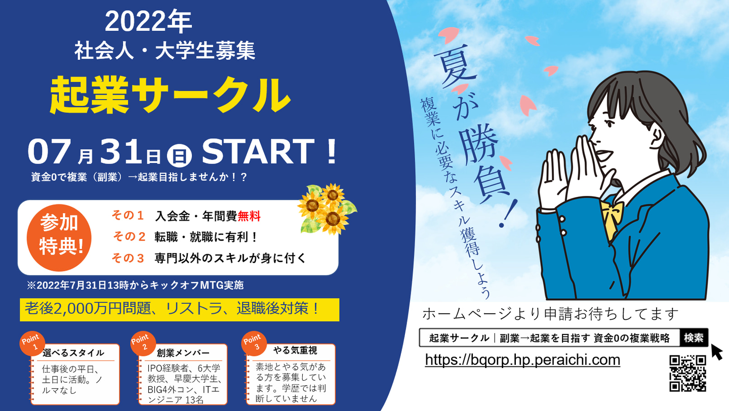 起業サークル | 副業→起業を目指す 資金0の複業戦略(オンラインイベント告知)大学生・社会人参加者募集