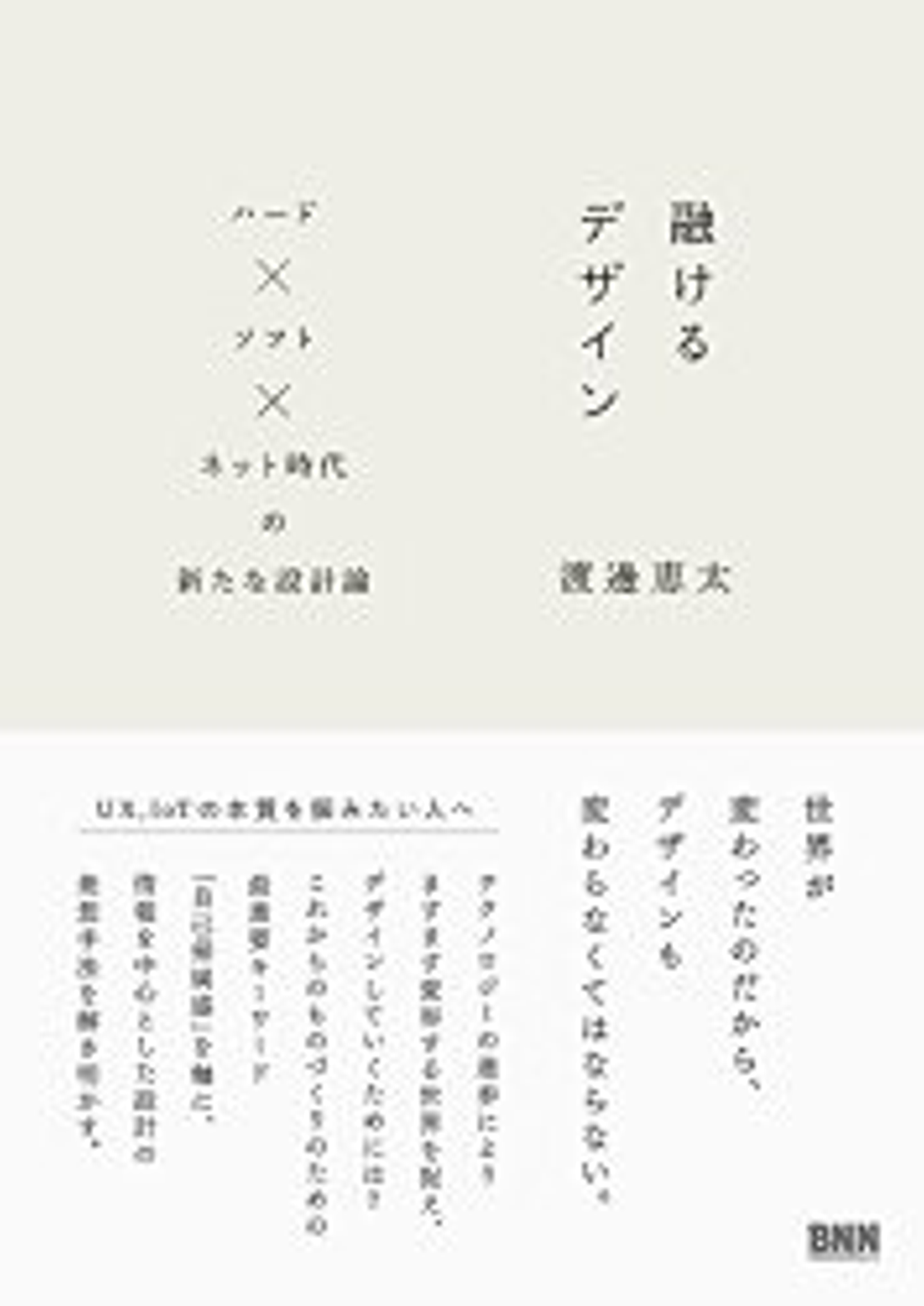 インタラクションの研究者である渡邊恵太氏による初の著書。「自己帰属感」というキーワードを軸に情報設計などを深掘りしていく。机の上の画面の中で完結していたソフトウェア開発から、モバイルそしてウェアラブル・IoTといった流れの中でのデザインの本質を感じることができる。