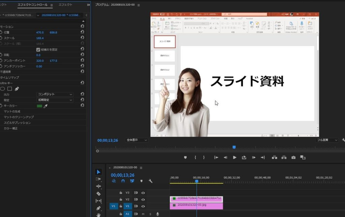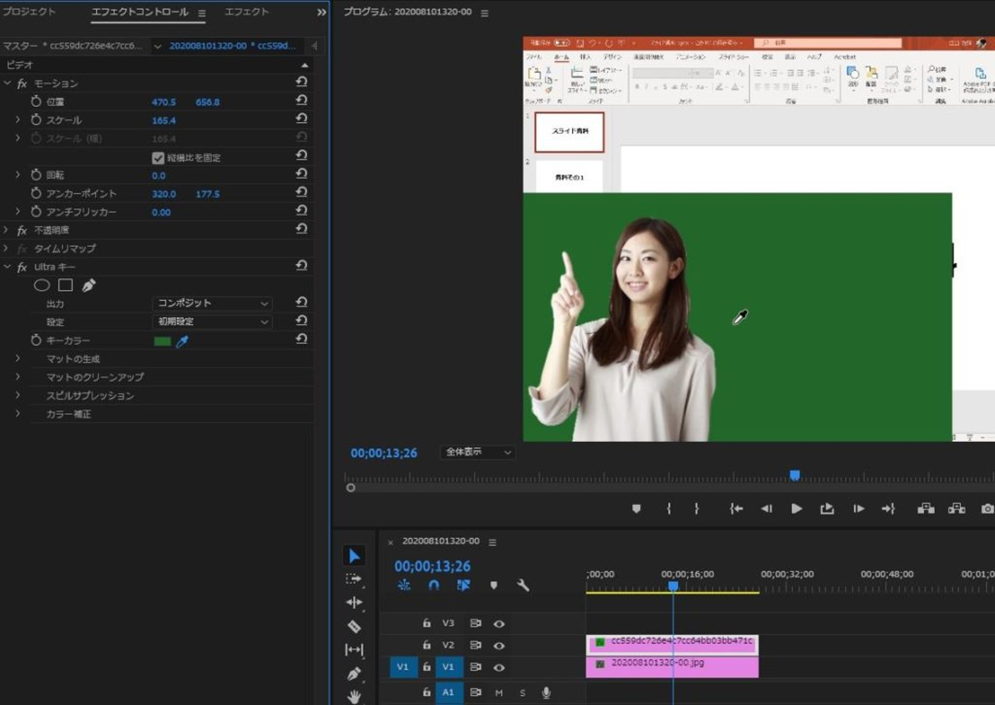 【PremiereProプレミアプロ】バーチャル背景(単色)+Ultraキー+OBS Studioでこんな感じが作れますという作成例