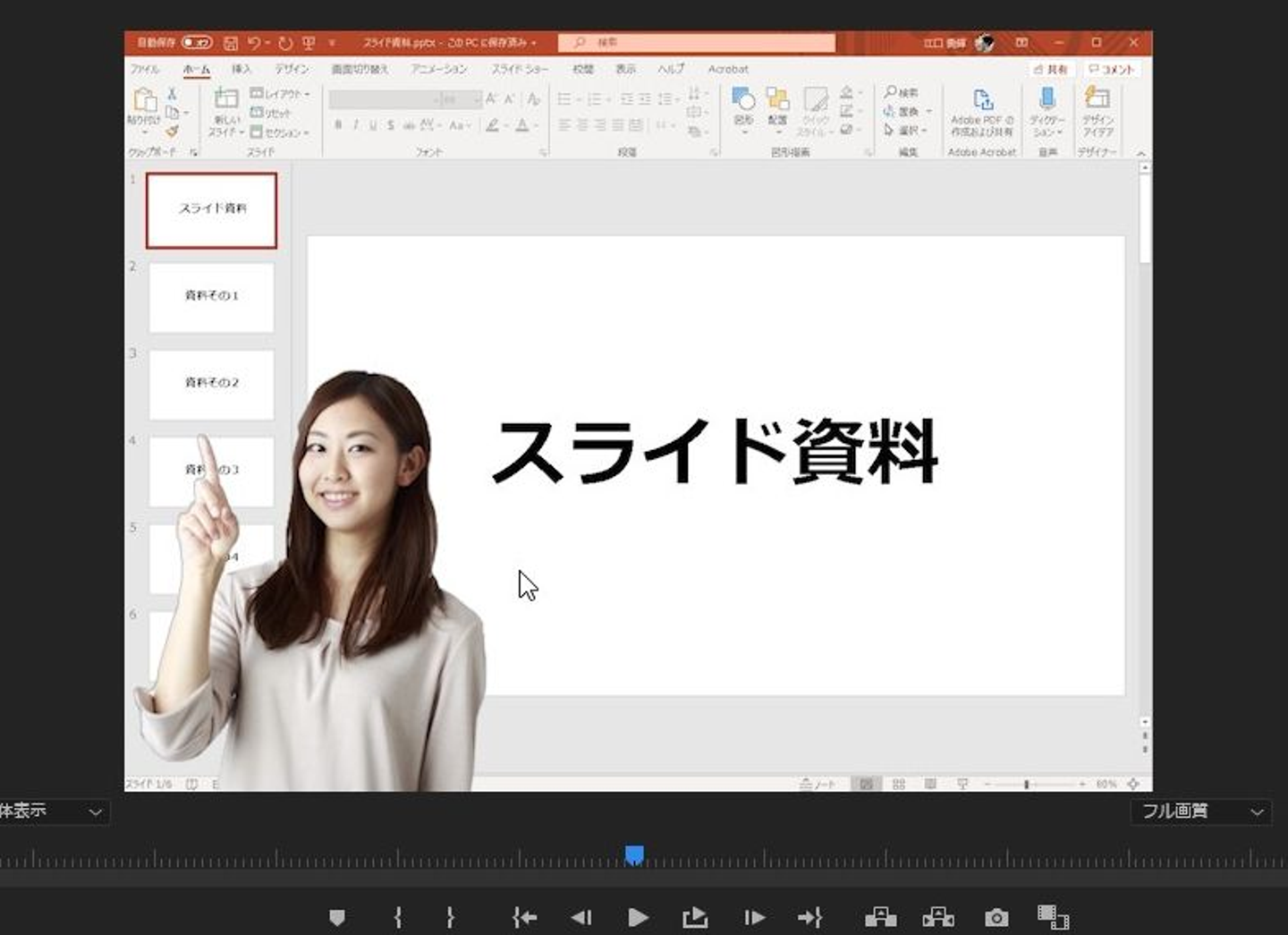 バーチャル背景(単色)+Ultraキー+OBS Studioの組み合わせで、グリーンバック環境を準備せずに、背景を透明にしてスライド資料と説明の姿を合成させることができます。