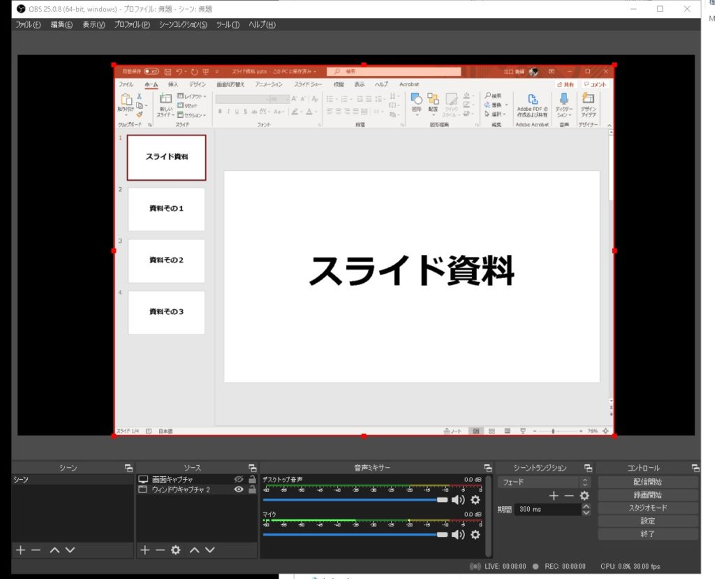 と、同時にPCの画面をキャプチャレコーディング(録画)します。「OBS Studio」という超便利なソフトがあるので、こちらを使います。