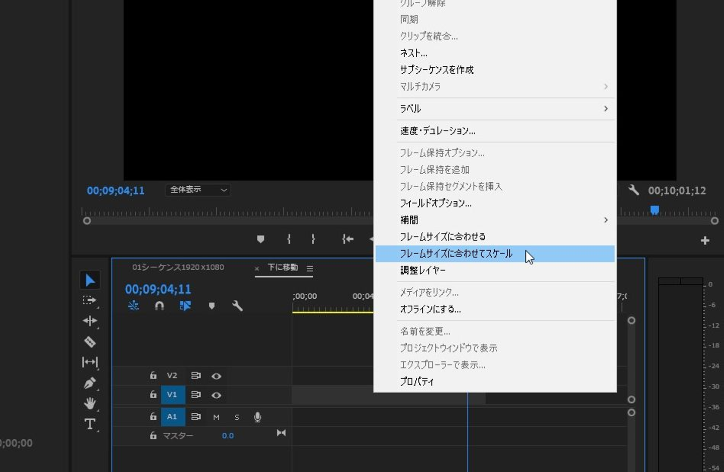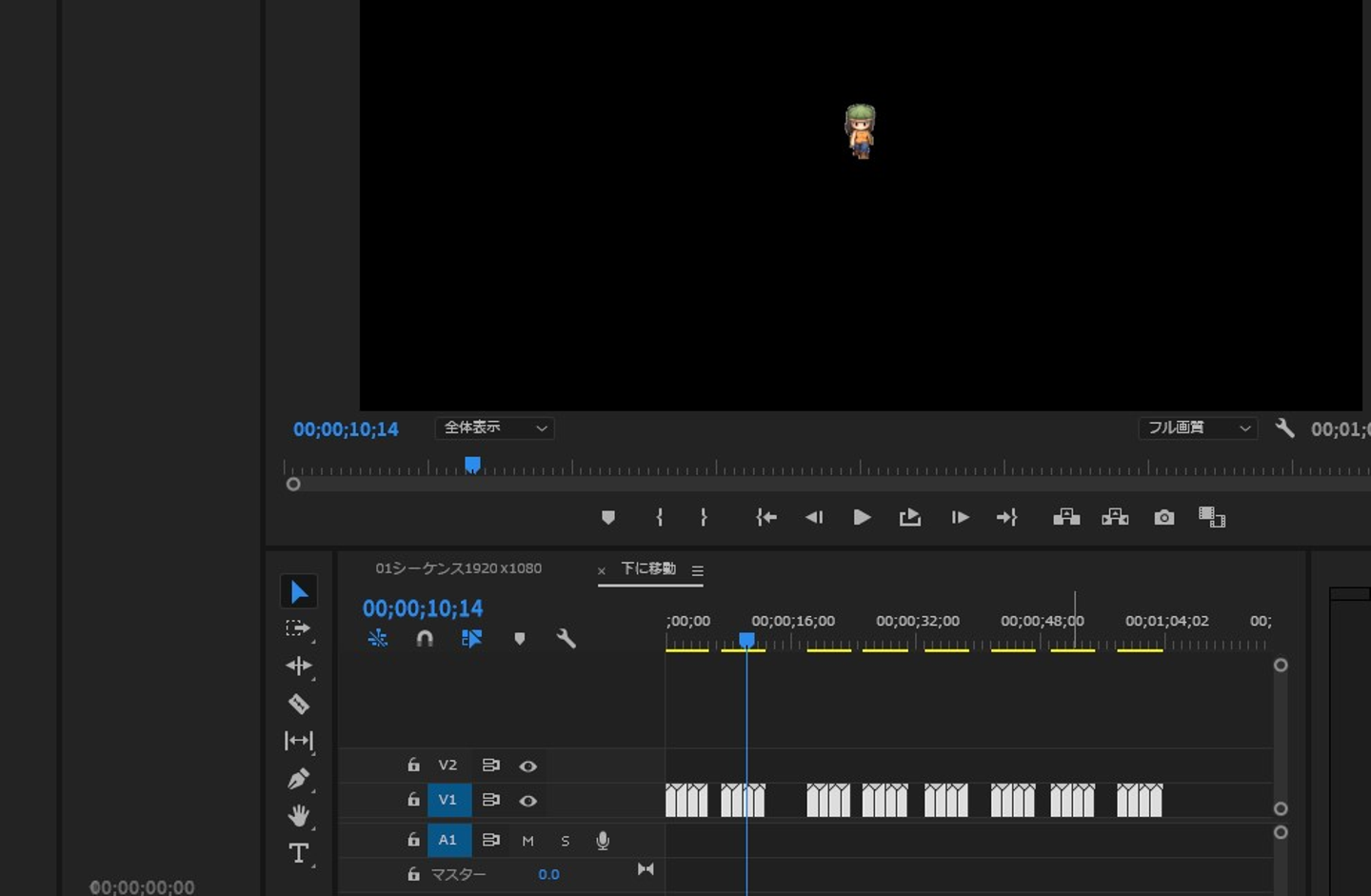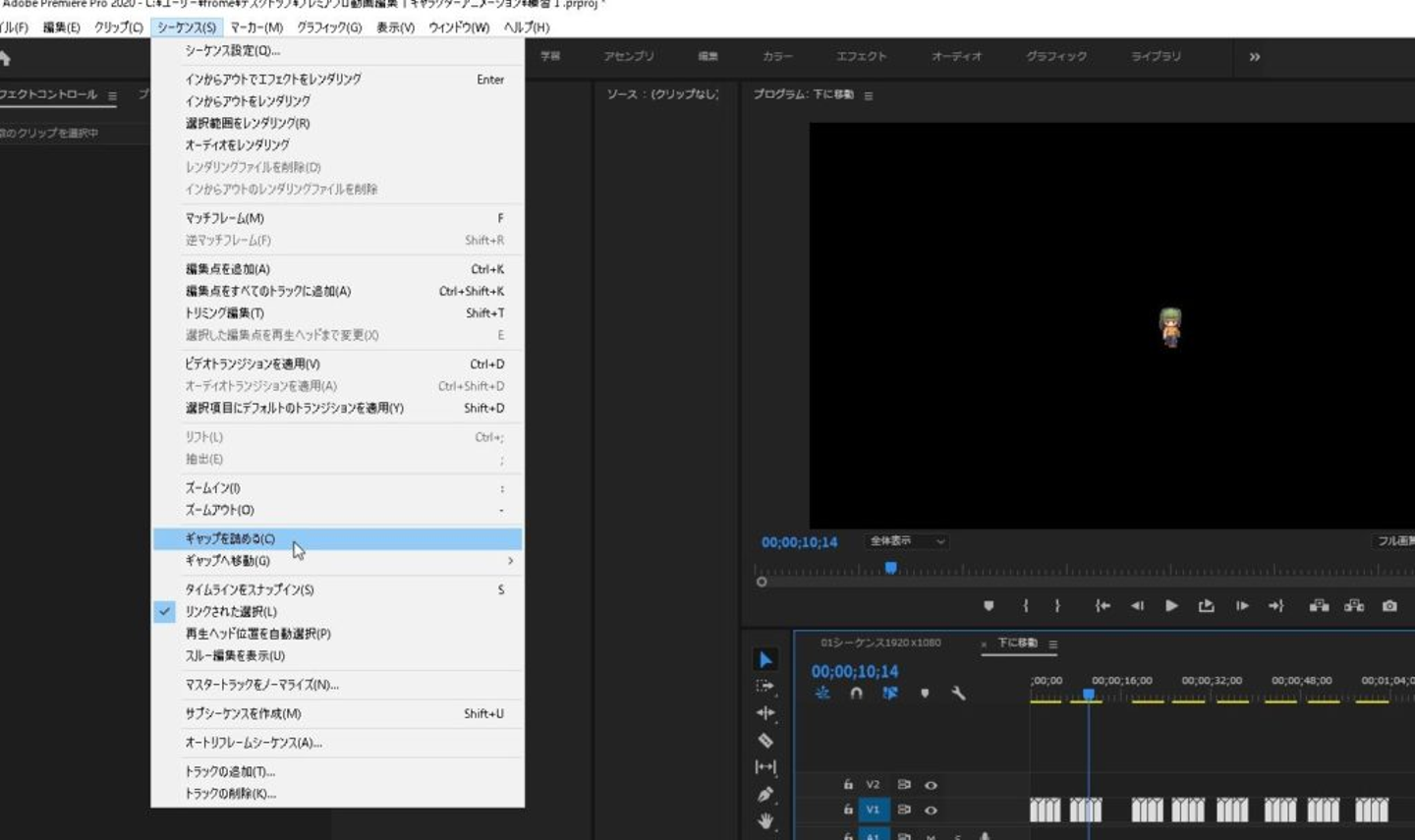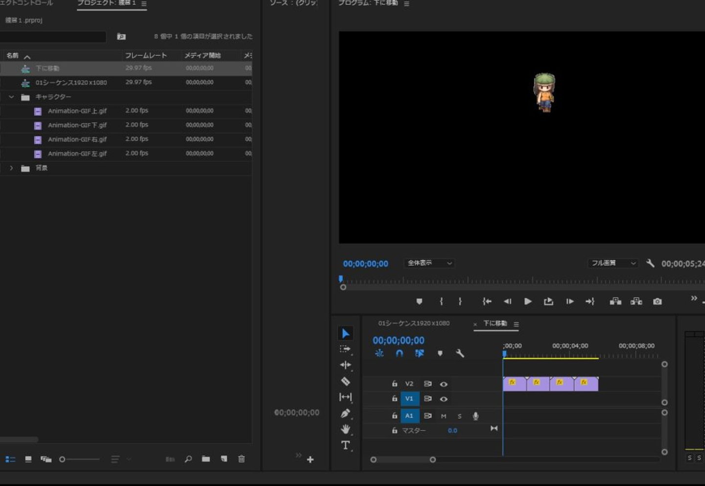 ひとまず、突っ込んだクリップ(キャラクターの方のトラック)を選択して、右クリック>「シーケンスのネスト」化します。