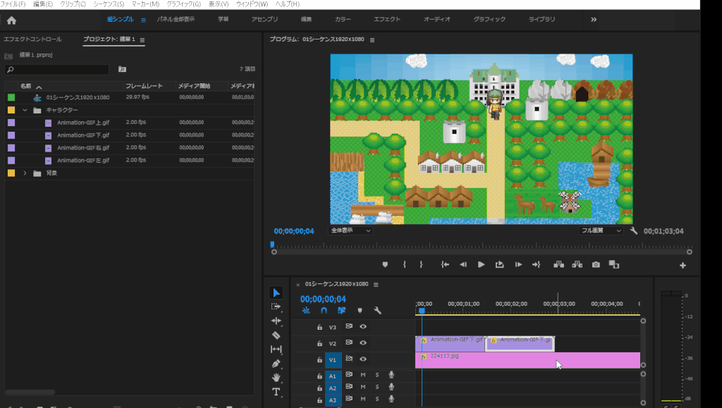 【Premiere Pro(プレミアプロ)】取り込んだGIF動画をタイムライン上でループさせるには・・・?|ループっぽくする方法