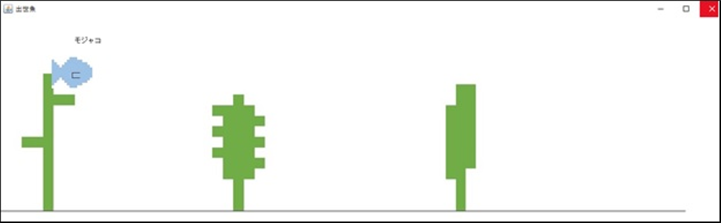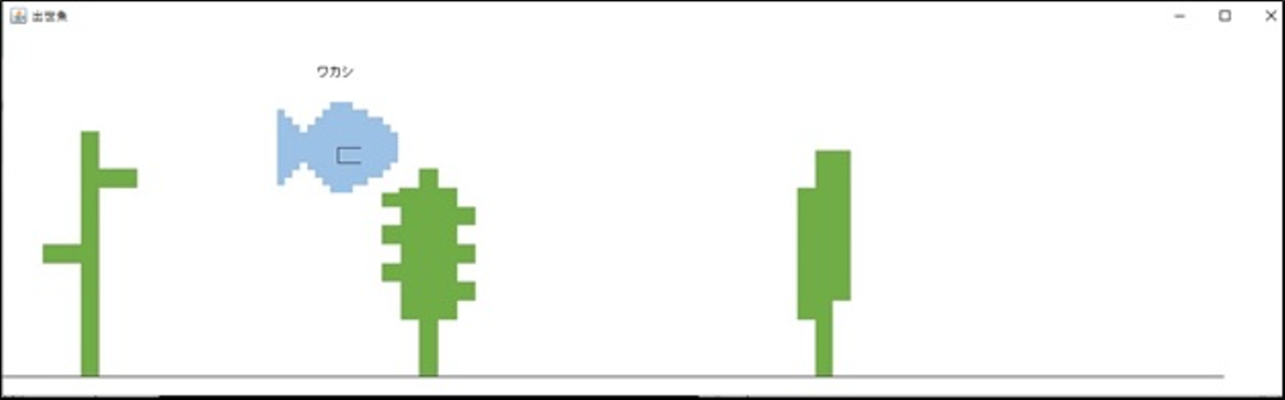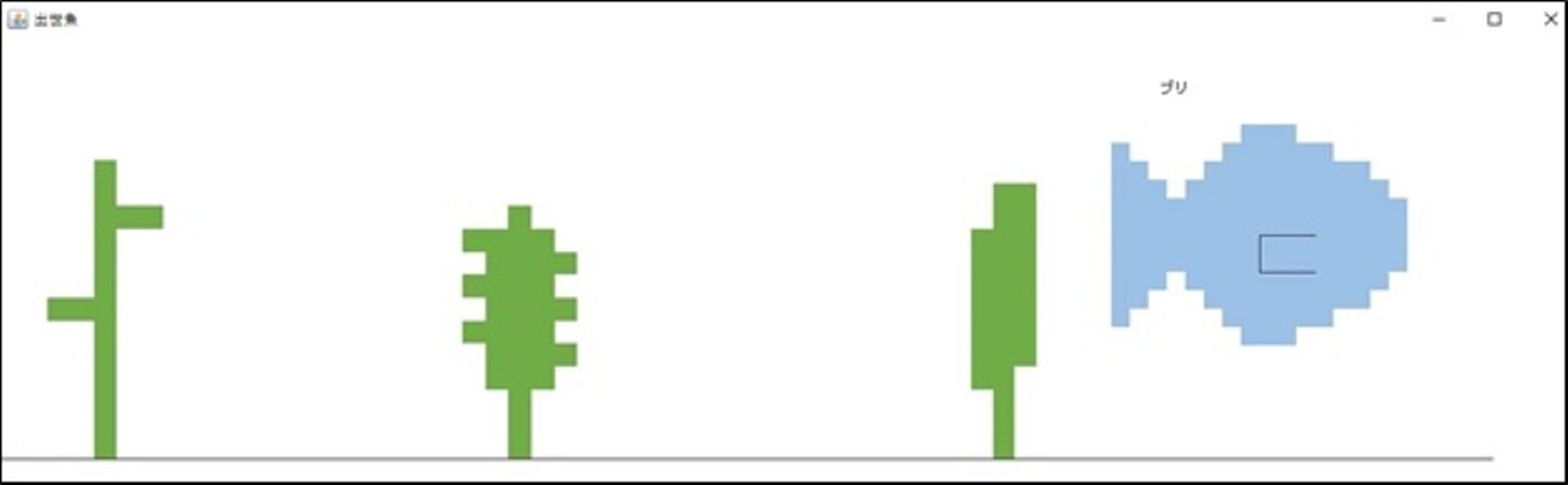 g.drawImage(sakana,10+kyori,100,this); //魚の画像表示。iが増えるごとに位置が右に移動する