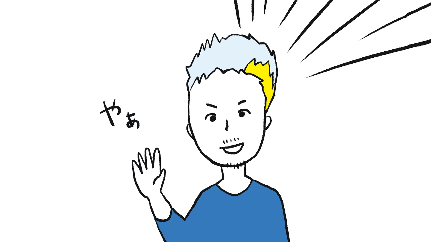 髪の毛の一部分だけが金髪になっている!スタバとかで仕事してそう!(偏見)IT企業には本当にこういう人がいるのか!!!いかつくて、ちょっと緊張…。