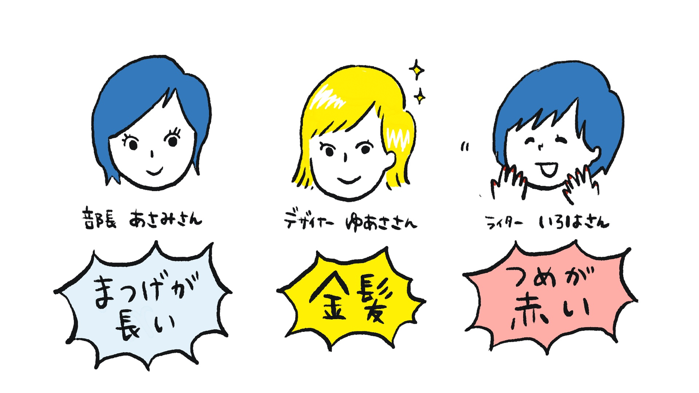 サイダスの社員の方は、全体的に華やかで綺麗にされてる方が多いな〜と言う印象です。私が所属するブランド戦略部は、女性のみのチームなので、特にそう感じるのかも。面接の時にお会いしたクリエイティブチームの御三方は、こんなところが印象的でした。