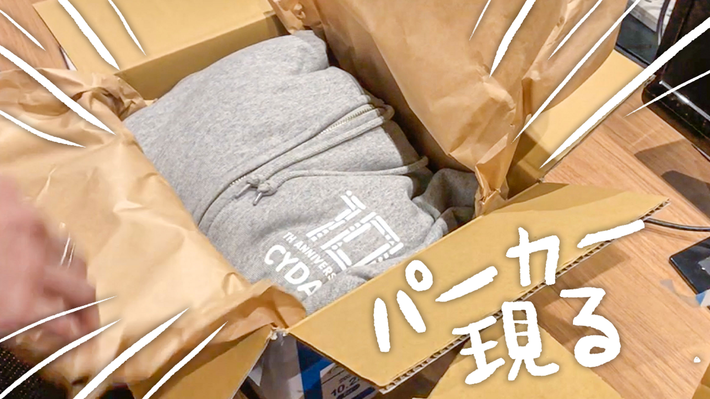 さて、ノベルティBOXの中身はこんな感じでした!このBOXを、イベント前に社員の自宅に発送しておりました。前日に開封解禁!からの、当日の社員はこんな様子。みんながパーカーやマグカップとともに参加してくれている風景に、ノベルティ制作担当としてはジーンとしちゃいます…😢