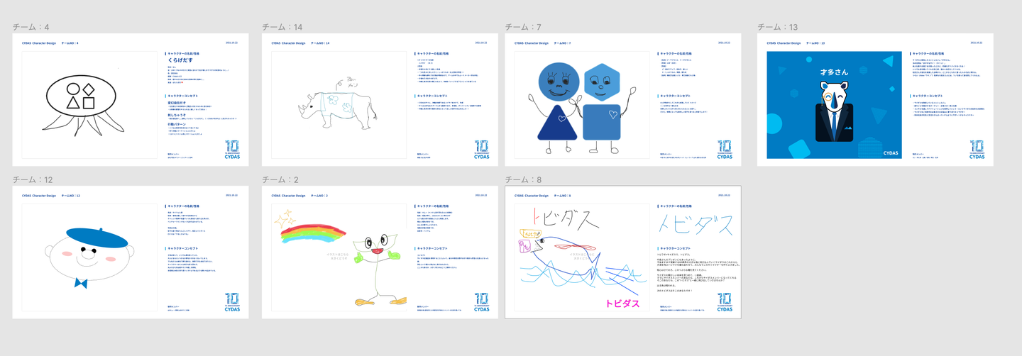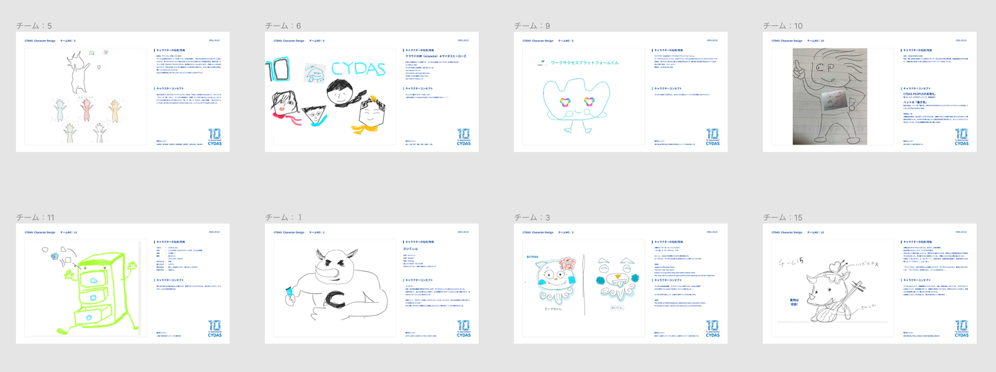 プレゼン大会の様子を振り返ってみましょう!こんなキャラクターたちが生まれました。かわいいのから、なんか怖いの、意味わかんないのまで……、個性が発揮されまくってる様子はまさにサイダスらしさといえましょう。