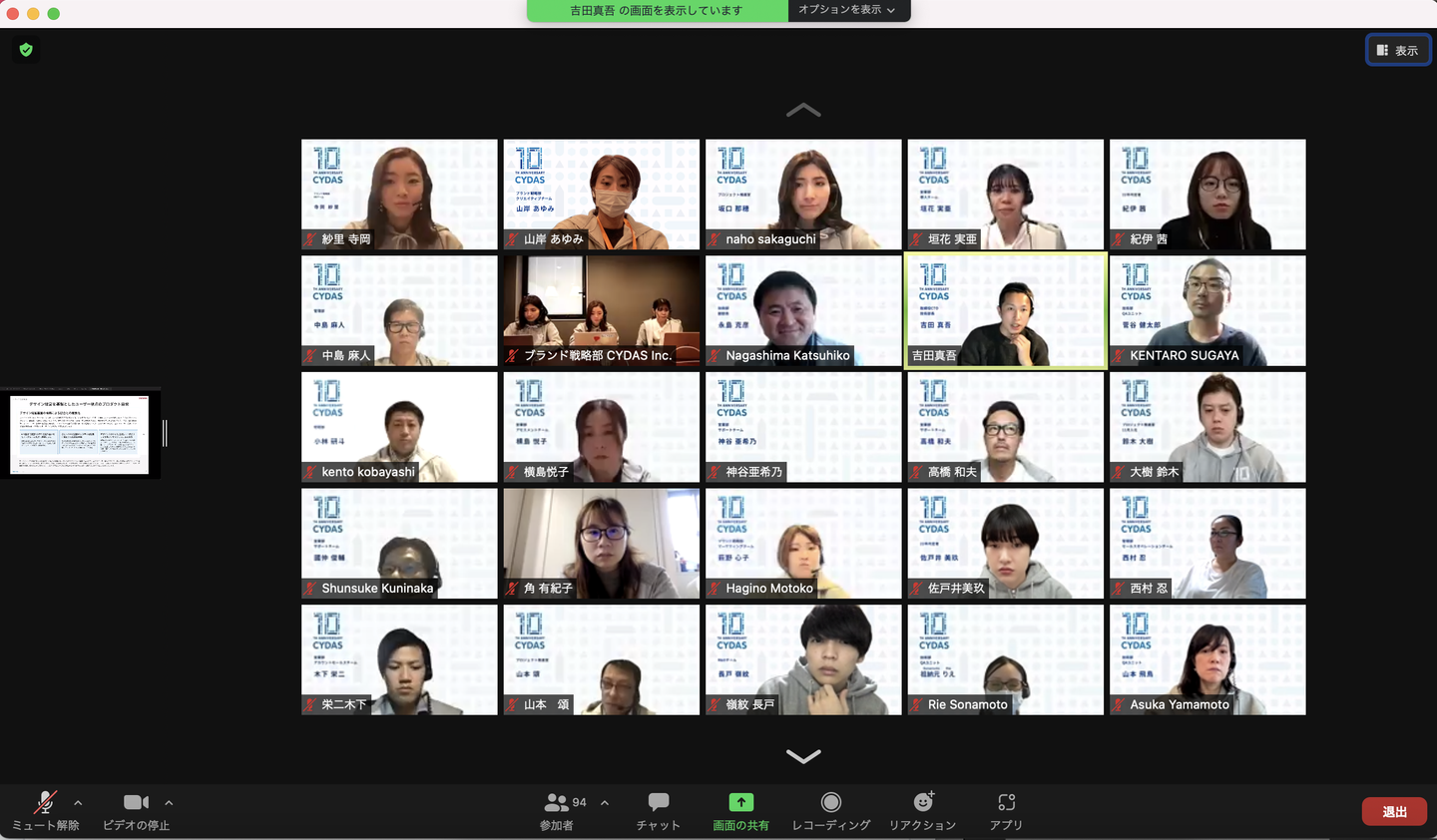 真面目なお話ではありましたが、丁寧に資料も準備してくださり、「今、サイダスってこんなことを考えているんだ!」「こんなことをしようとしているんだ!」とはっきりわかる時間になったのではないかと思います。私も「よし、会社の目標のためにデザインに磨きをかけていくぞ」と気持ちを引き締め直す機会になりました。