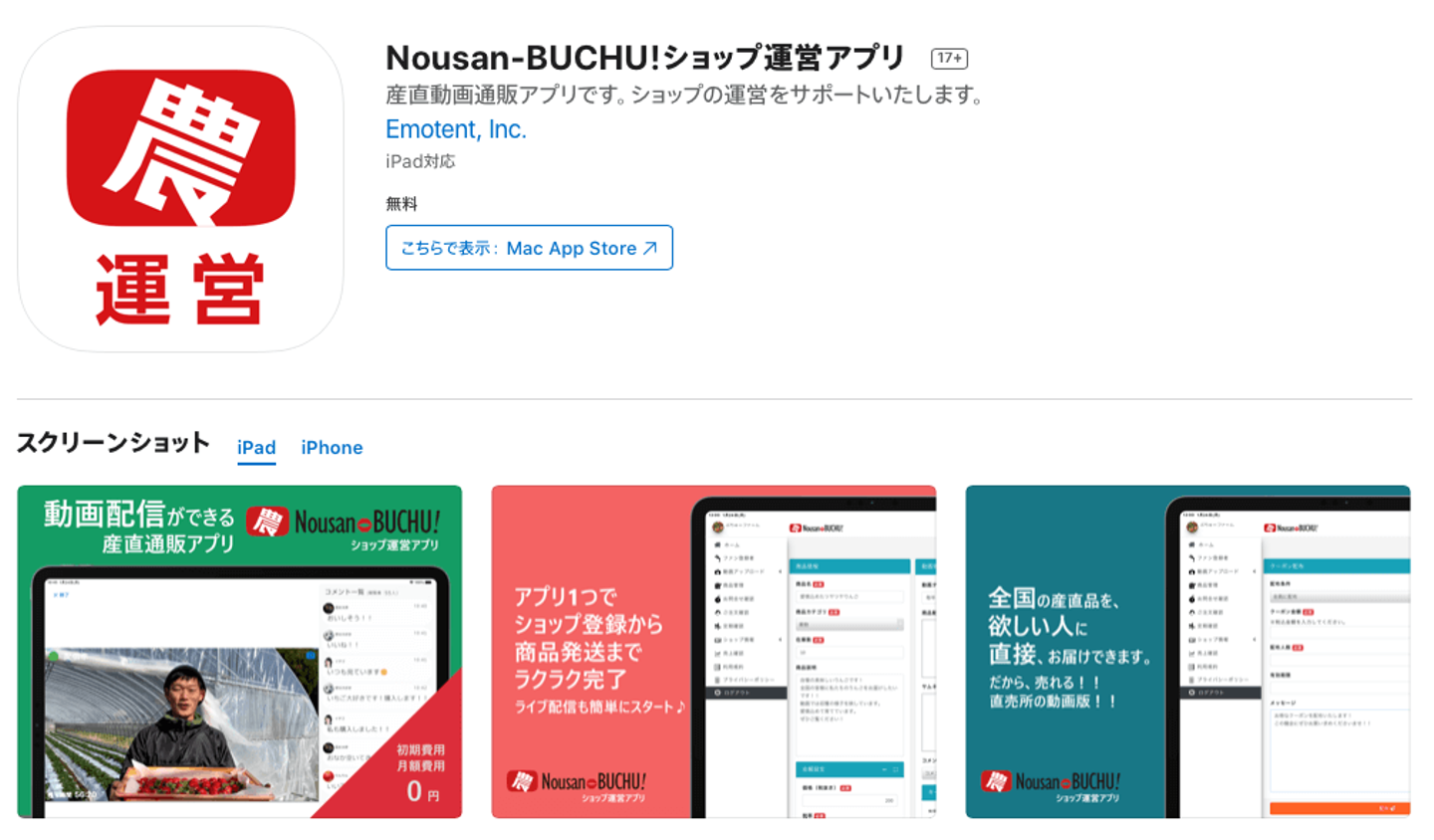 CtoC型ライブ配信機能やカート機能を実装した、Nousan-BUCHU!ショップ運営アプリで、通常マレントをご導入いただきました。