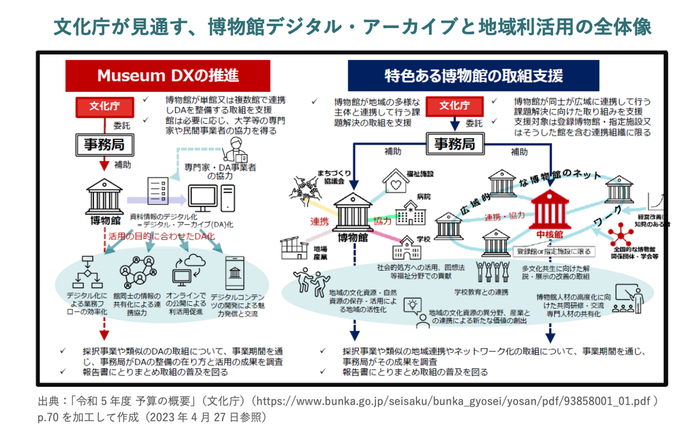 しかし大事なのはそこではなく、今回の博物館法改正に伴い、文化庁が資料のデジタルアーカイブ化と博物館DX、また地域課題解決への先進的な取り組みの事例作りを推進しているということです。つまり今後博物館では、「デジタルアーカイブ」「地域課題解決」に取り組む館が、だんだんと増えてくることが予想されます。