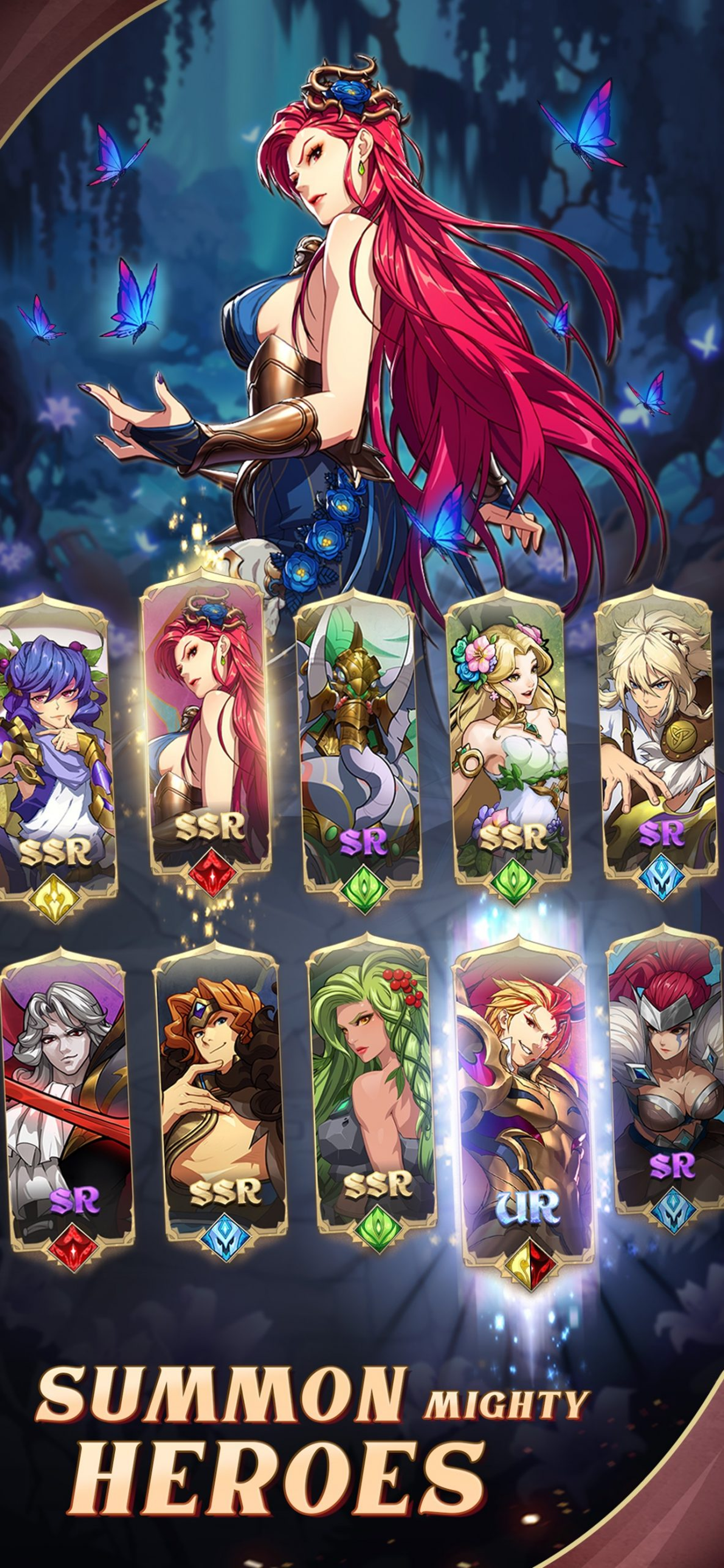 Dunkle Mächte bedrohen das Schicksal der Welt, aber du bist nicht allein! Beschwöre eine Armee einzigartiger Götter und Helden aus verschiedenen Kulturen, um dein eigenes Elite-Team zu bilden. Du kannst dann ihre Fähigkeiten mit mächtigen neuen Fertigkeiten verbessern, ihre ikonischen Waffen freischalten und sie für epische Schlachten stärken. Dein Spiel wird sogar Belohnungen sammeln, während du AFK bist, um dir zu helfen, das Reich zu retten!