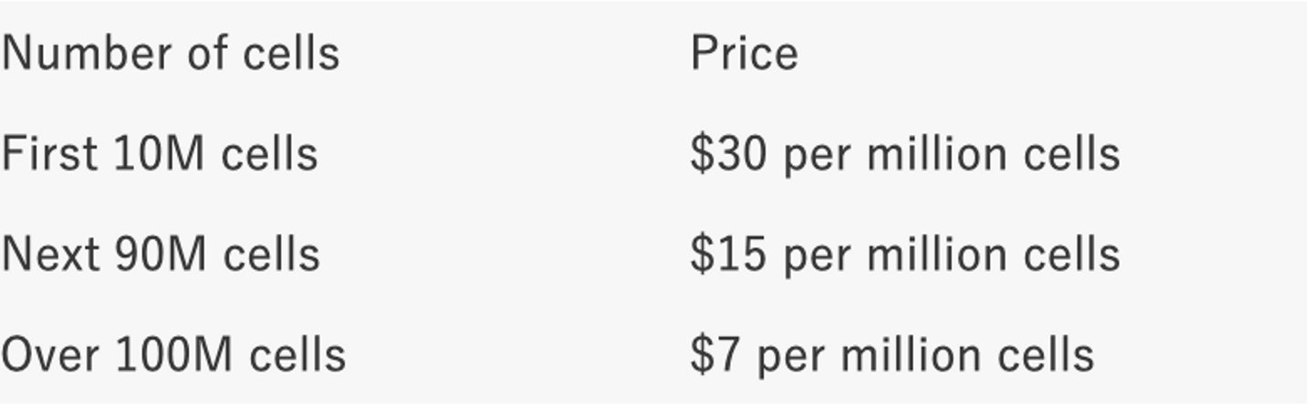 トレーニングしたデータの大きさに応じて下記料金が発生します。
