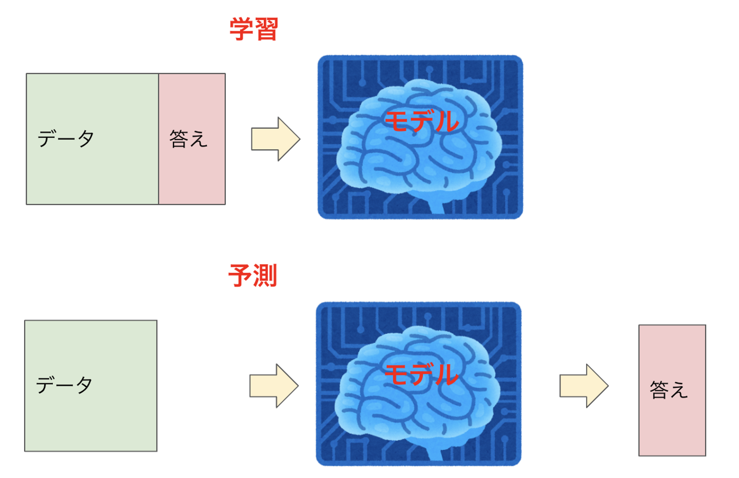 機械学習にはいくつか種類があります。今回対象とするのは最も一般的な「教師あり学習」と呼ばれるものになります。