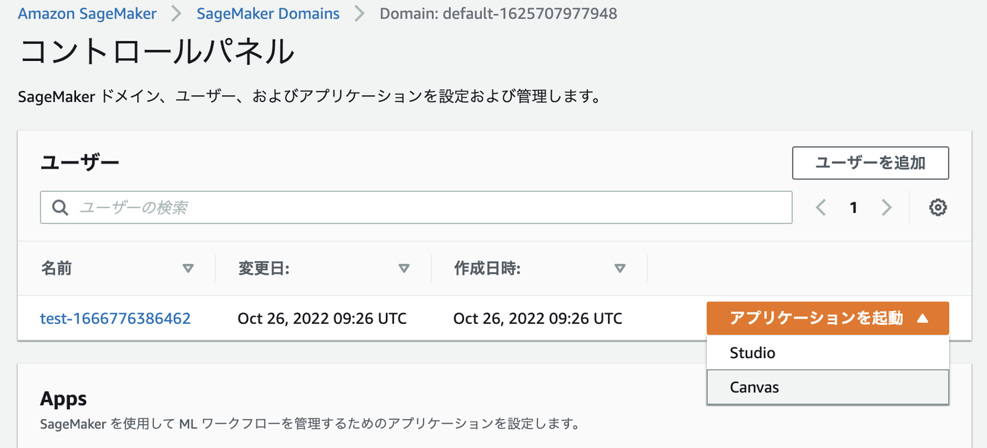 SageMaker Canvasを使用するためにはまずユーザーを作成する必要があります。