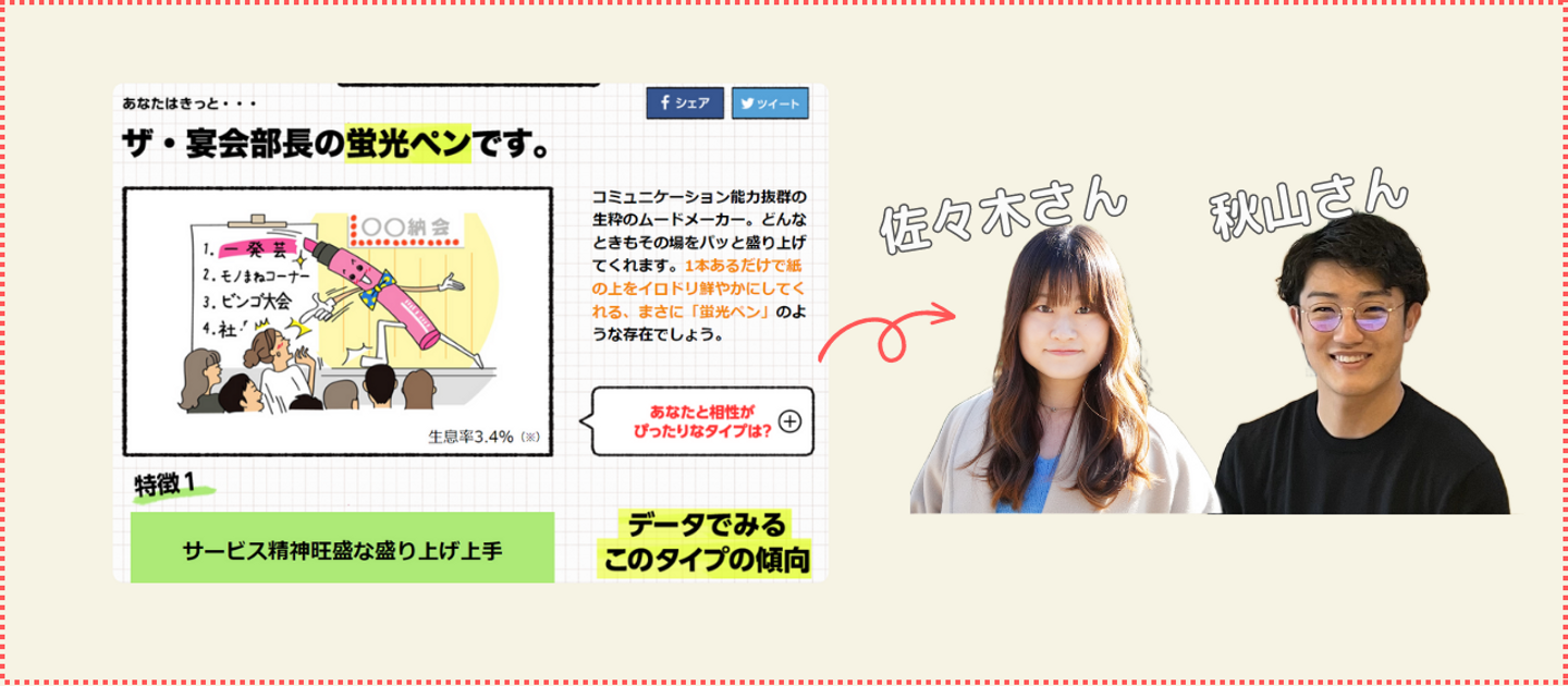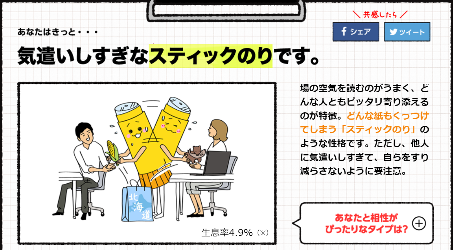こんにちは!株式会社ジョブサーカスの成田です。 突然ですが、 いくつか質問に答え、あらかじめ分類された計16タイプの中から性格や心理を分析してくれるもの。自分自身を理解し、更に磨いていくツール。 大手企業の採用活動や有名スポーツチームのチーム作り、学生のカウンセリングなどなど・・・ あらゆる場面で活用されています! ということで、早速、性格診断を受検してみました。今回利用したツールはこちら⇩
