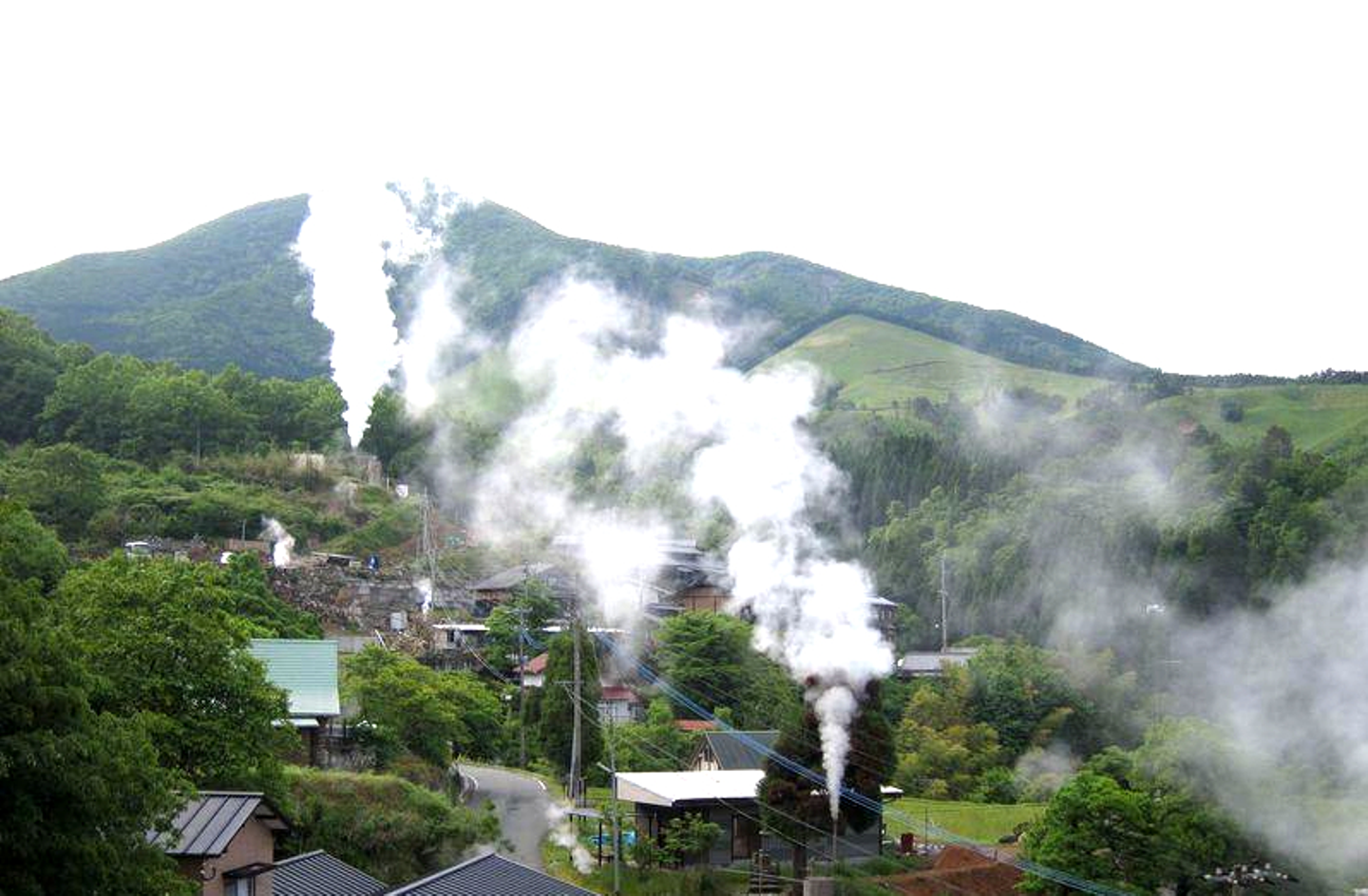 町の空気感や透明感。山や田んぼがキラキラと輝き、至るところに温泉が湧き出る、豊かな土地。