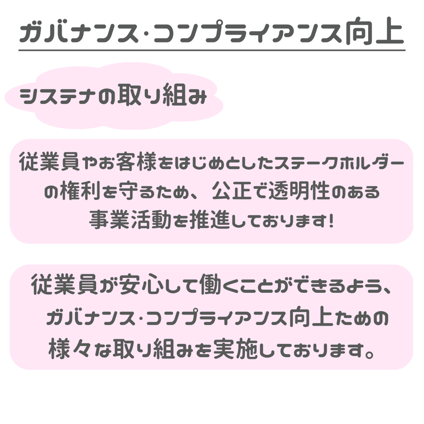 ガバナンス・コンプライアンスの向上 システナ 管理本部 広報 on 2023/03/24 システナでは、ガバナンス・コンプライアンス向上にむけての取り組みを実施しております。今回は、システナでの取り組み内容の一部をご紹介いたします。これら以外にも、部署の枠組みを超えて企業価値向上のための施策を検討するワーキンググループも実施しております。様々な取り組みによって、顧客数の増加、収益の増加、新サービスの提供に繋がっております。従業員が安心して働けるよう、今後もガバナンス・コンプライアンスの向上に努めてまいります!システナについてはこちら ガバナンス・コンプライアンスの向上 システナ 管理本部 IT コンプライアンス ガバナンス システナ systena 1 いいね! シェア 1 いいね!