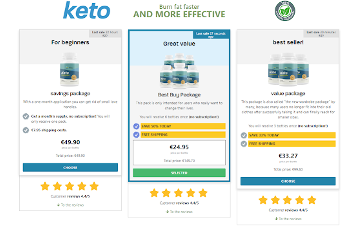 Es gibt keine negativen Nebenwirkungen, um die Verwendung des Produkts zu erhöhen. Es ist eine natürliche Formulierung, die speziell auf Ketose abzielt. Dadurch wirkt es sich auf den Körper aus. Mit Hilfe dieser Lösung werden Kraft und Ausdauer sowie die Konzentration verbessert. Mit der Verwendung dieses Produkts sind Bewegung und ein Fitnessstudio nicht erforderlich. Es liefert sofortige Ergebnisse nach nur wenigen Tagen.