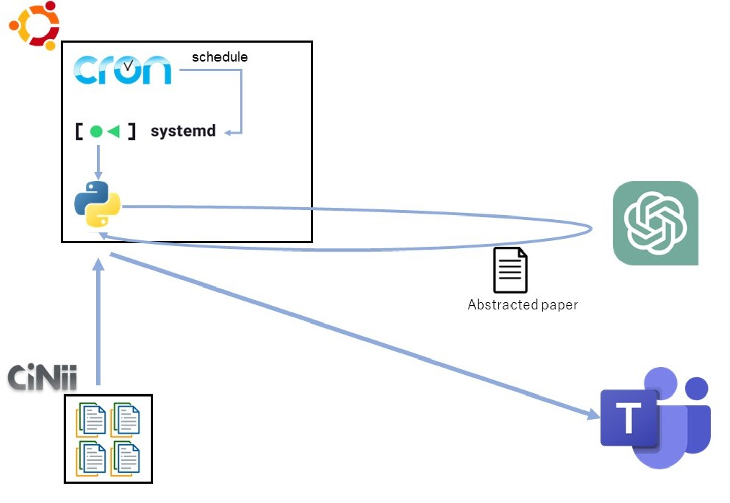 そこで、今回は自動で論文を収集し、ChatGPTで要約し、それをteamsに送信する様なツールを作成した。