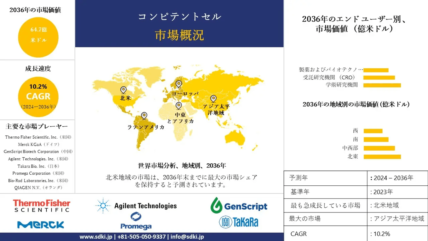 コンピテントセルの産業規模、動向レポート、洞察分析、2024-2036年予測