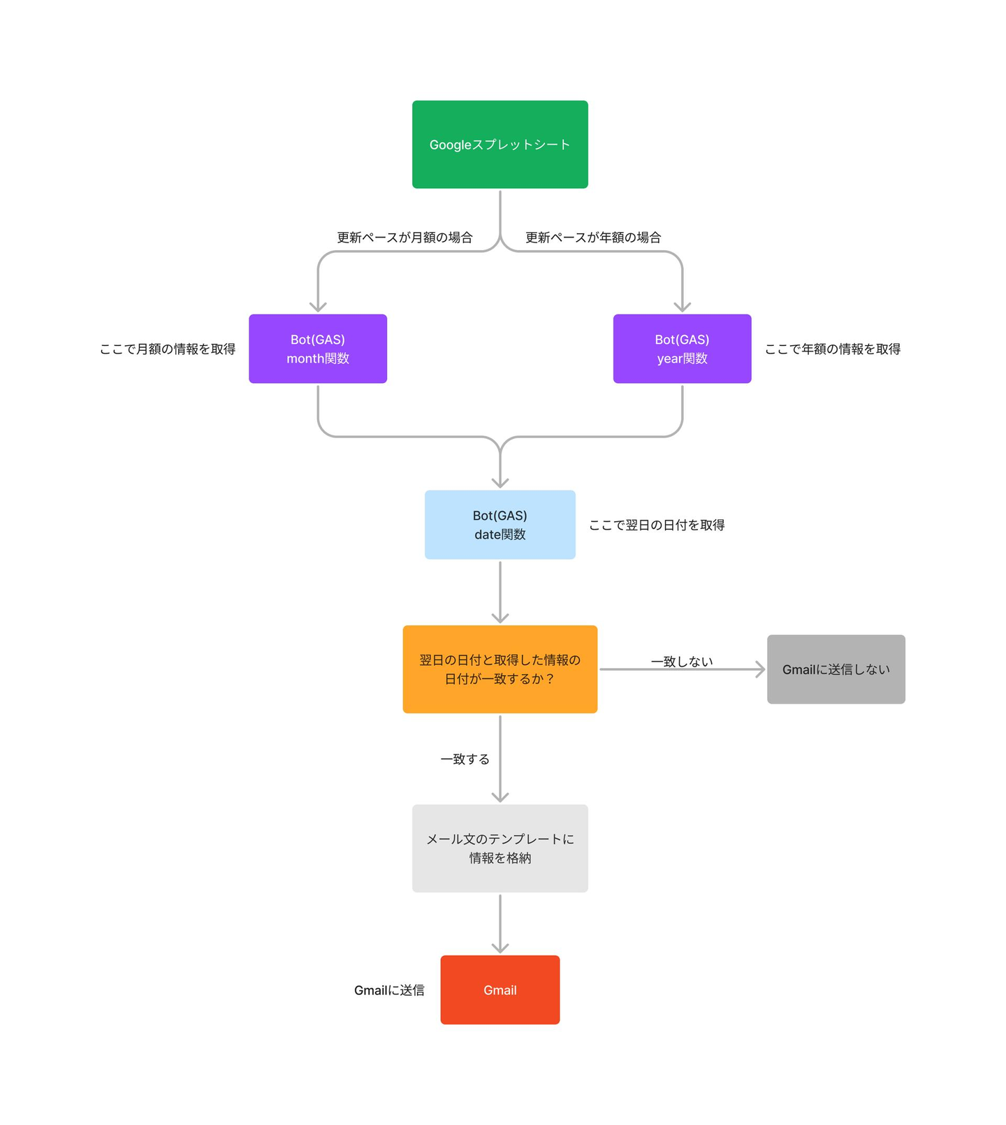 Amazon primeやYouTube premiumなどのサブスクリプションに契約していると、よく更新日を忘れてしまうことがあります。それを防ぐために、更新日前日にGmailに更新日のお知らせを通知してくれるBOTを作ることにしました!