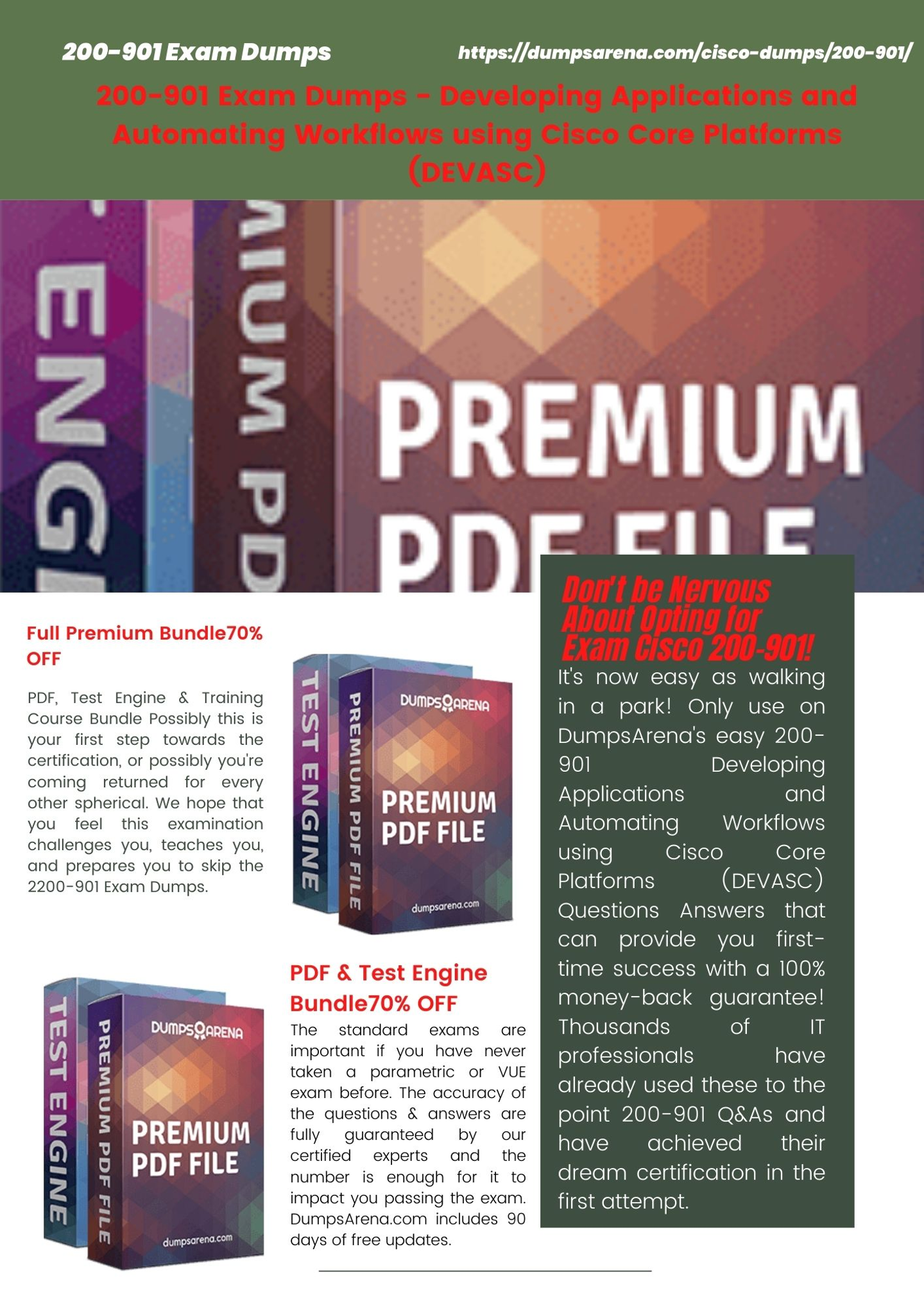 200-901 Exam Dumps If you are a busy IT professional and also you don’t have much time searching out the right sort of take a look at guide, then we can facilitate you with all that you need. We've true and updated 200-901 Exam Dumps with the assist of which you may skip exam.