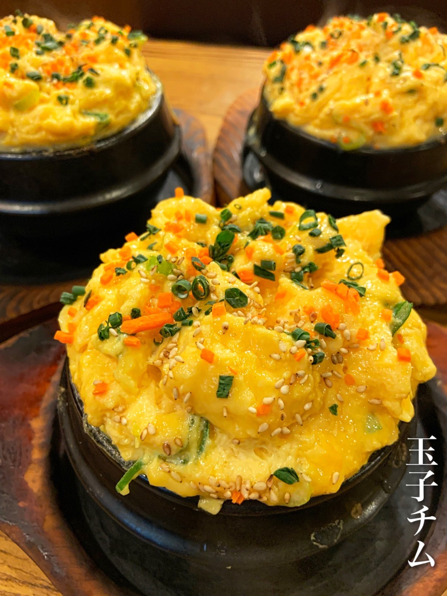 韓国風茶碗蒸しとも呼ばれる玉子チム!シンプルでやさしい味付けだから辛いものを食べる合間に丁度いいです!ふわっふわで見た目もかわいいから写真映えにもおすすめ!