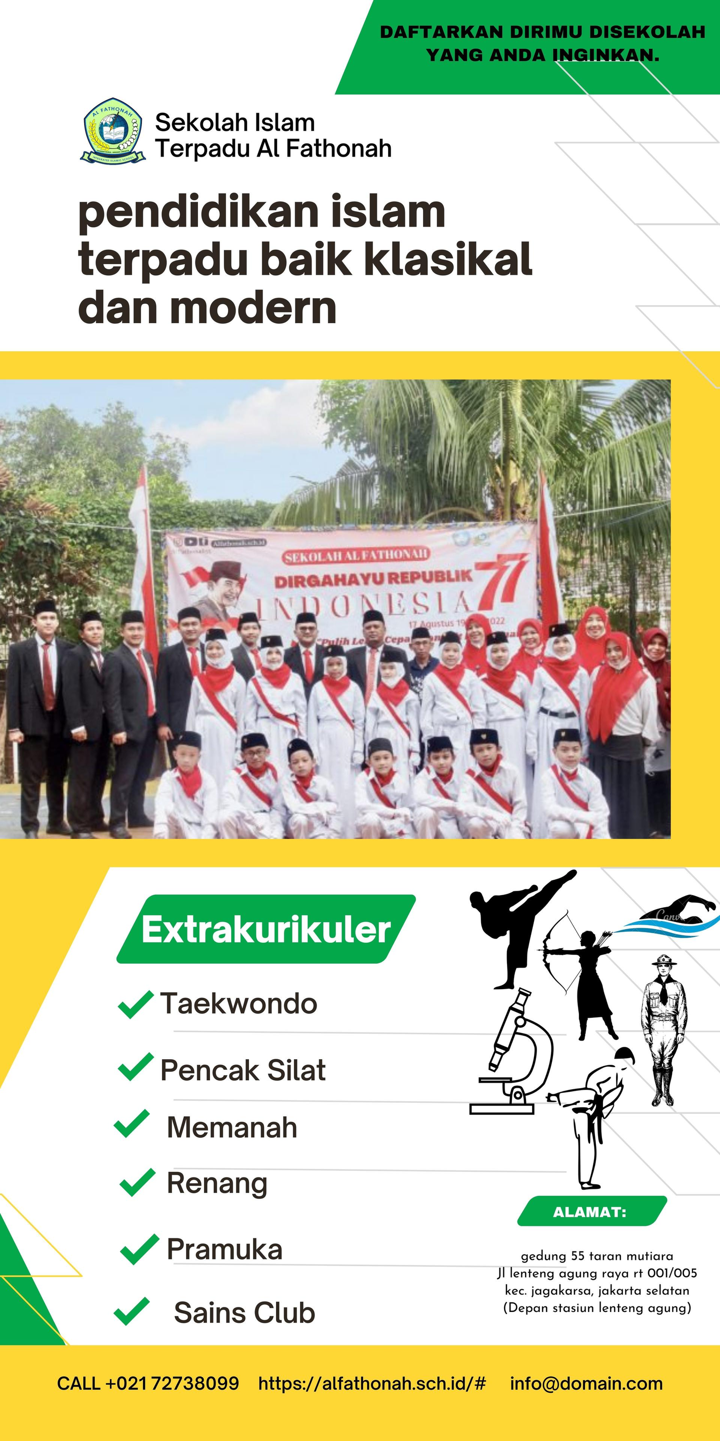 sekolah dasar islam terpadu al fathonah, luas, dan terbaik, CALL 021 72738099